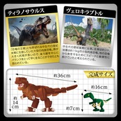 ブロックパーツ(ティラノサウルス、ヴェロキラプトル):332個組立説明書:2冊パーツリムーバー:1個