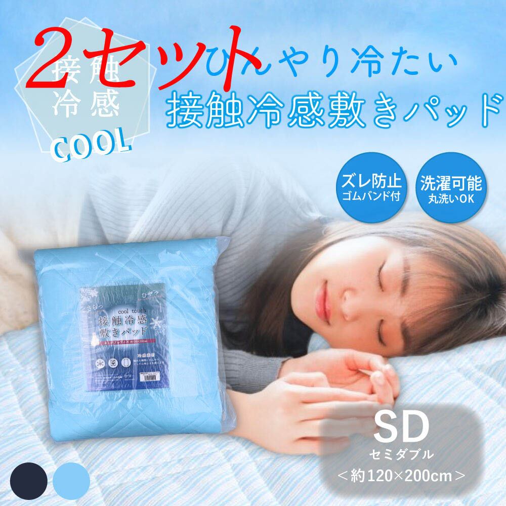 【2セット】 接触冷感 敷パット セミダブル サックス 約120×200cm 【pto】