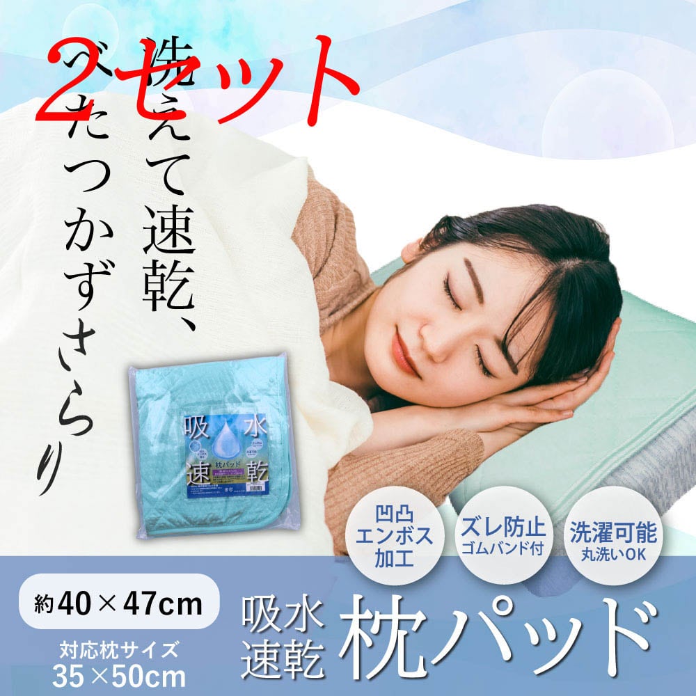 【2セット】 吸水速乾 枕パッド ライトグリーン 約40×47cm 【pto】