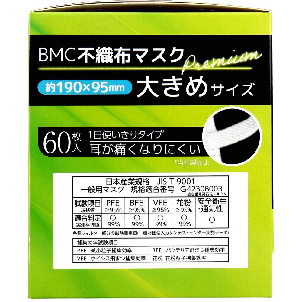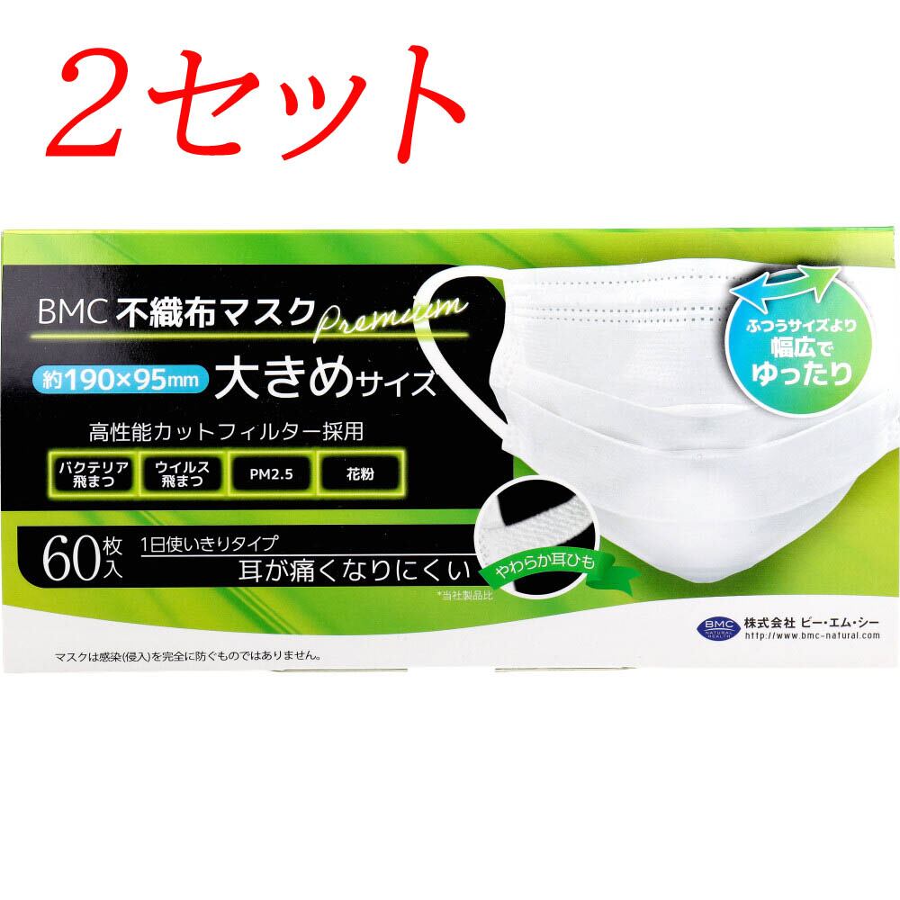 【2セット】 BMC 不織布マスク プレミアム 1日使いきりタイプ 大きめサイズ 60枚入 【pto】