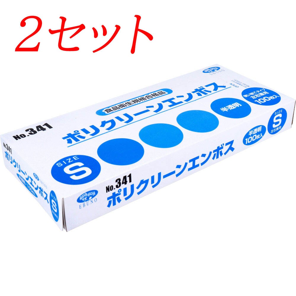 【2セット】 【業務用】No.341 ポリクリーンエンボス 食品衛生法適合 使い捨て手袋半透明 Sサイズ 箱入 100枚入 【pto】