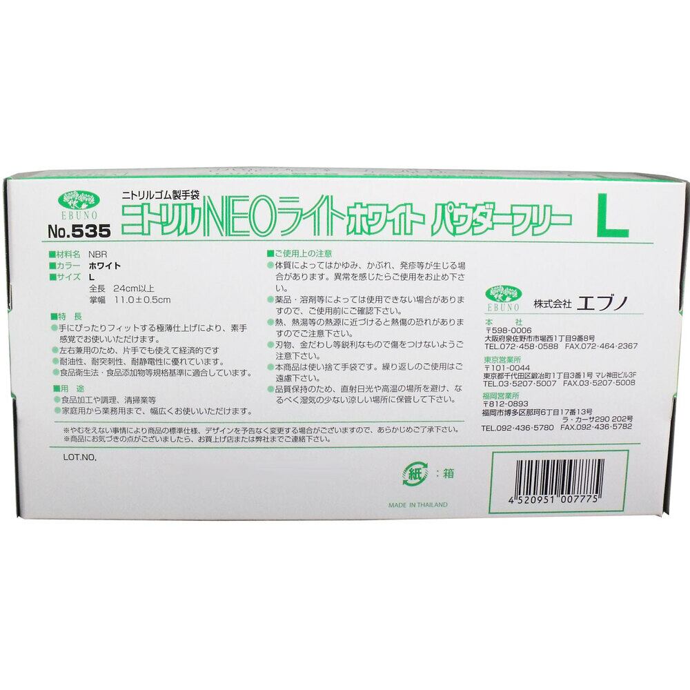 【2セット】 【業務用】ニトリル手袋 NEOライト パウダーフリー ホワイト Lサイズ 100枚入 【pto】