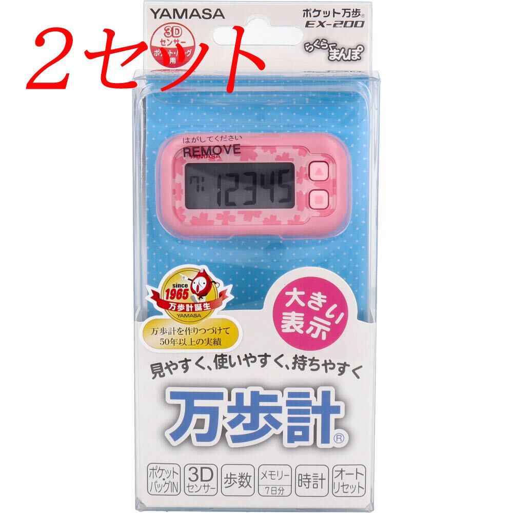 【2セット】 ヤマサ ポケット万歩計 らくらく万歩 EX-200P サクラピンク 【pto】