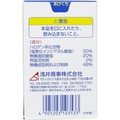 ハロゲン系化合物(塩素化イソシアヌル酸塩)・・・30%無機過炭酸塩・・・20%界面活性剤・・・2%無機成型剤及び助剤・・・48%