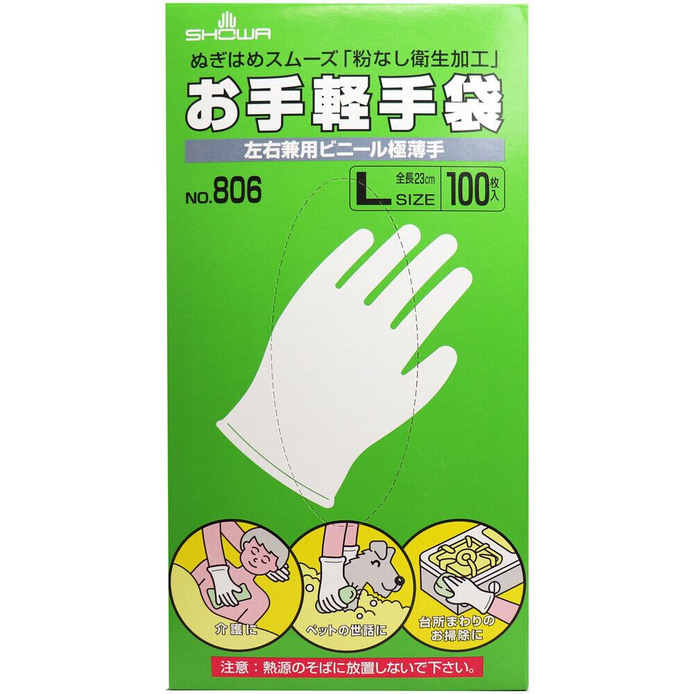 【2セット】 お手軽手袋 No.806 左右兼用ビニール極薄手 粉なし Lサイズ 100枚入 【pto】