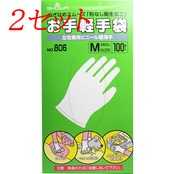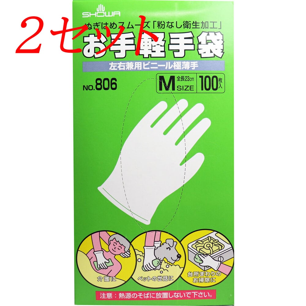 【2セット】 お手軽手袋 No.806 左右兼用ビニール極薄手 粉なし Mサイズ 100枚入 【pto】
