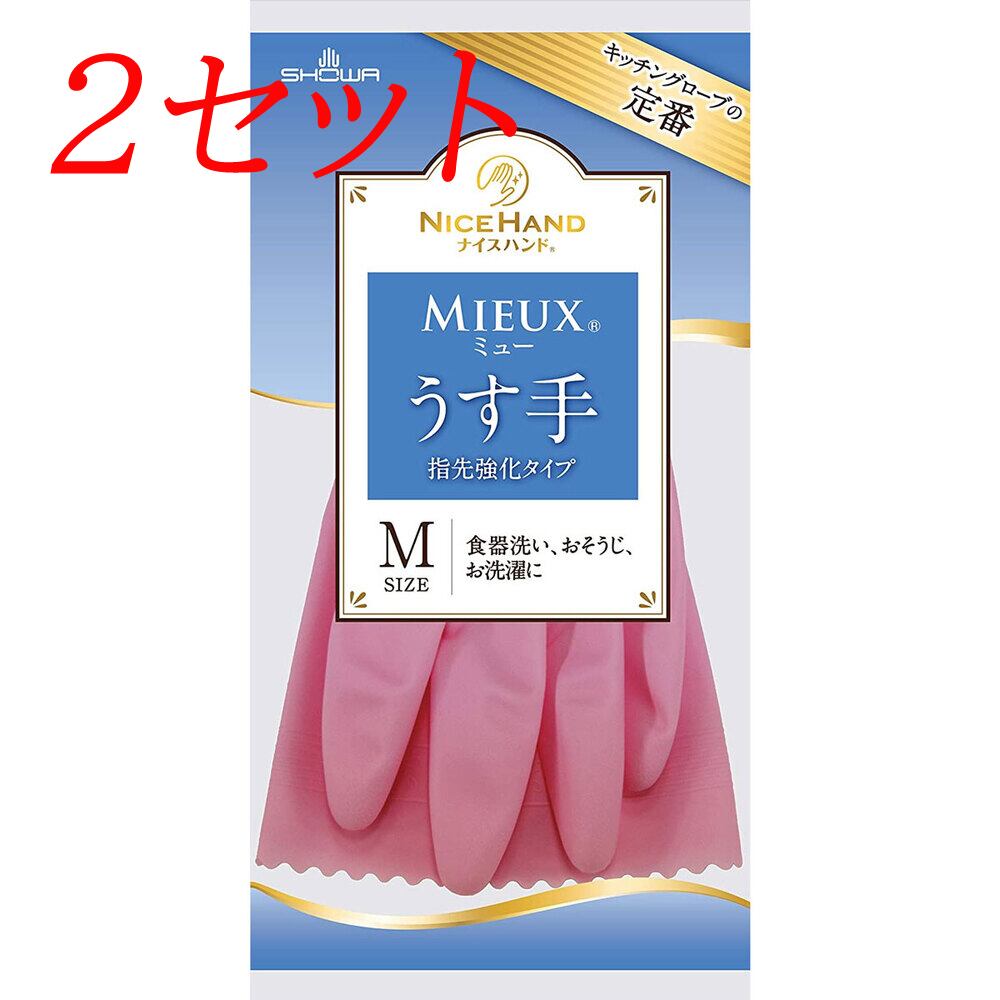 【2セット】 ショーワ ナイスハンド ミューうす手 指先強化タイプ ピンク Mサイズ 【pto】