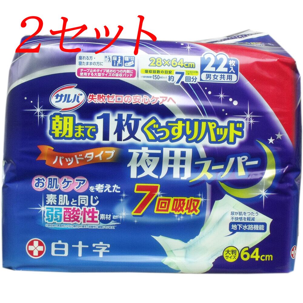 【2セット】 サルバ 朝まで1枚ぐっすりパッド 夜用スーパー 男女兼用 22枚入 【pto】