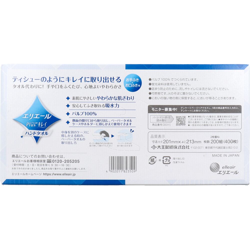 【2セット】 エリエールPlus+キレイ ペーパーハンドタオル ソフトタイプ ボックス 2枚重ね200組(400枚) 【pto】