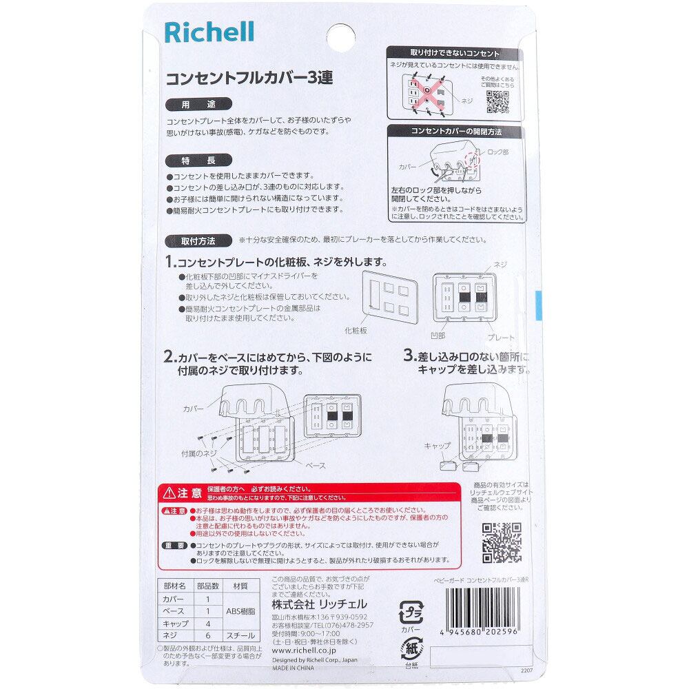 【2セット】 リッチェル ベビーガード コンセントフルカバー3連R 1個入 【pto】