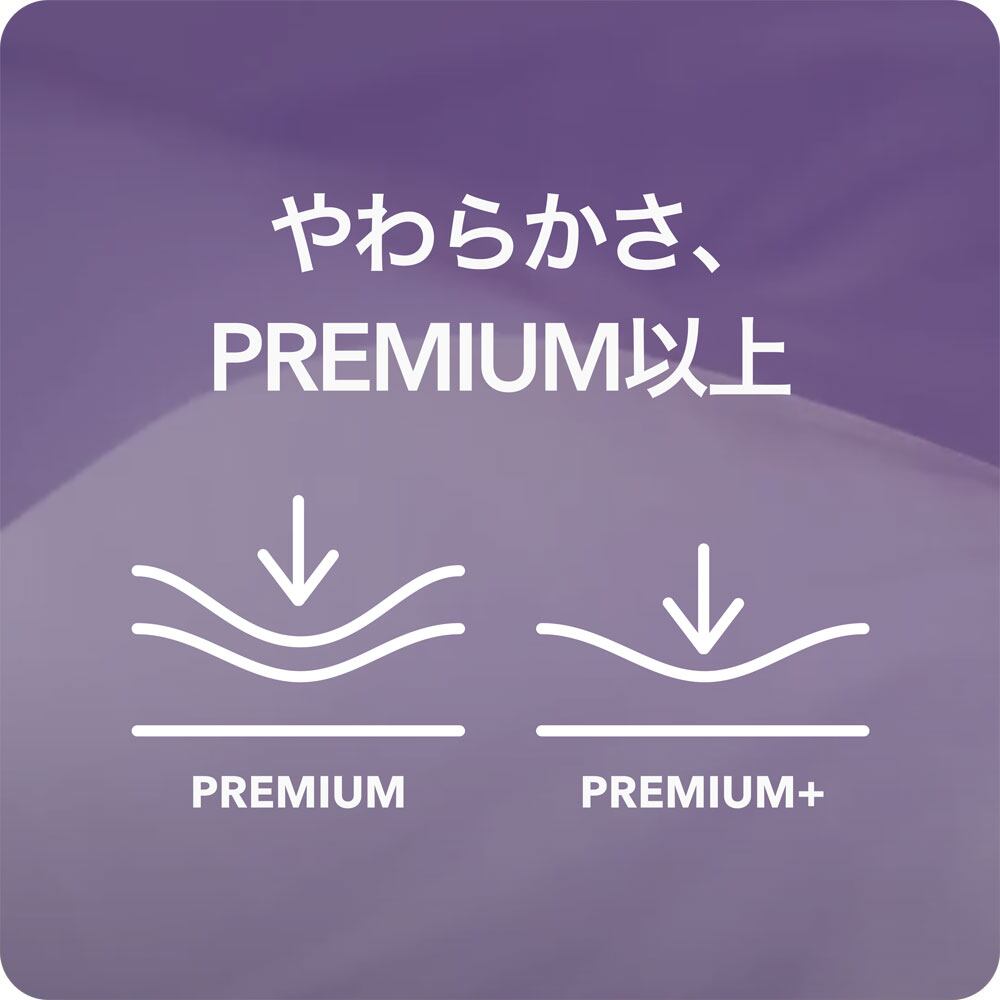 ●伸縮性アップでさらにやわらかく。やわらかさを追求したPREMIUMに、さらに伸びの良さを加えたPREMIUM+。ふたりがもっと気持ち良くなれるコンドームです。