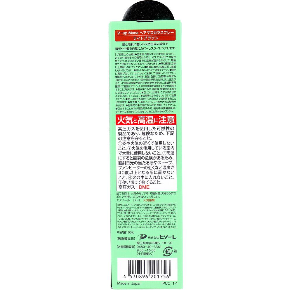 【2セット】 ボリュームアップ mana ヘアマスカラスプレー ライトブラウン 100g 【pto】