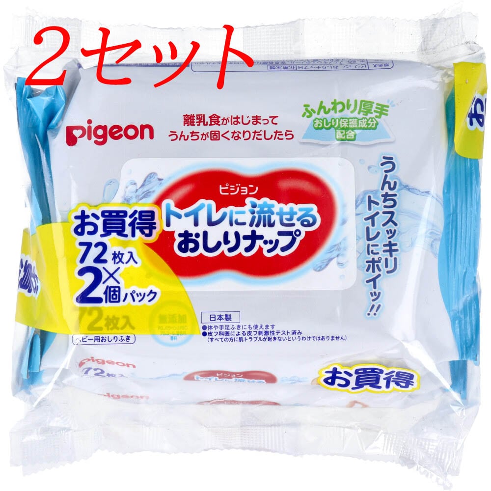 【2セット】 ピジョン トイレに流せるおしりナップ ふんわり厚手 72枚入×2個パック 【pto】