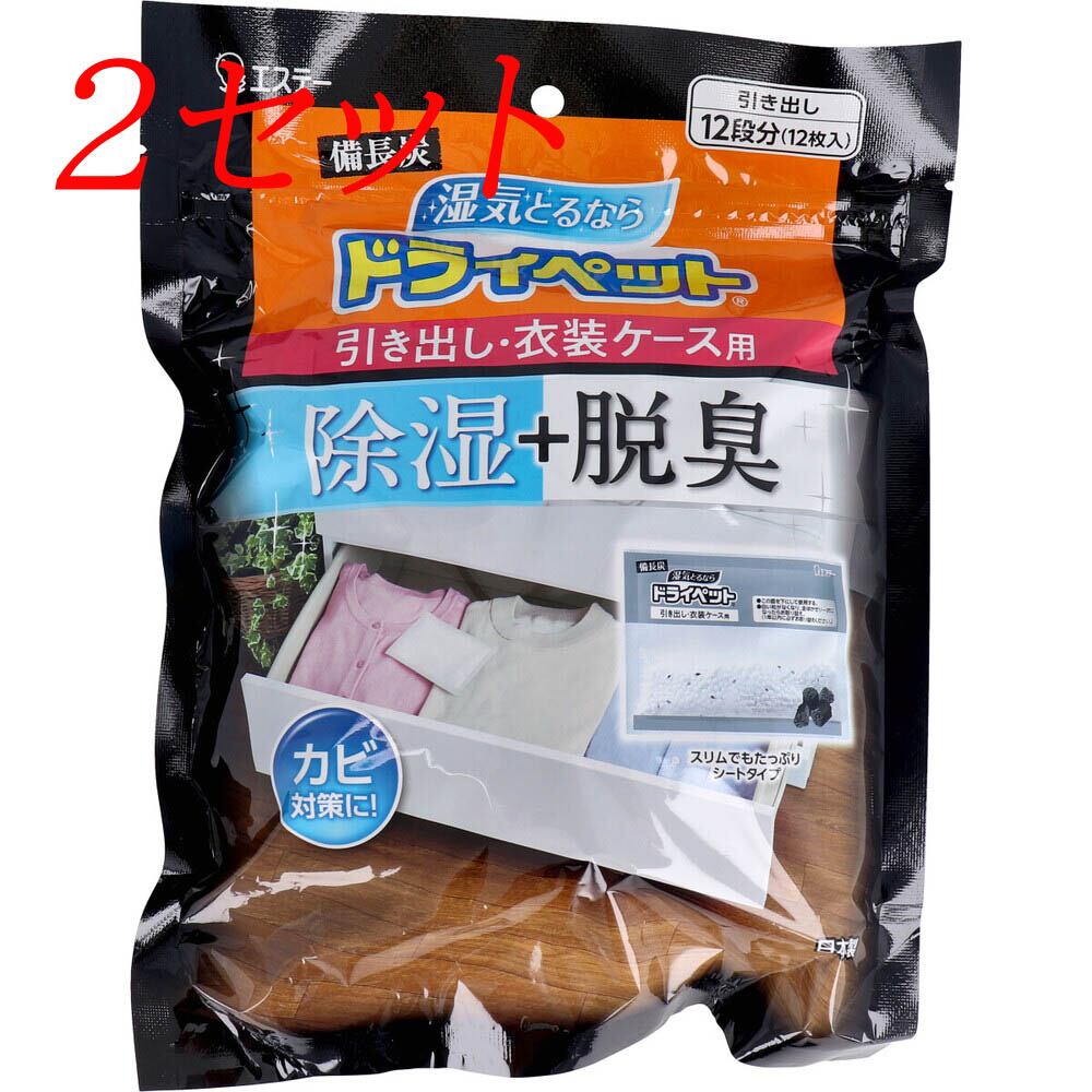 【2セット】 備長炭ドライペット 引き出し・衣装ケース用 25g×12枚入 【pto】
