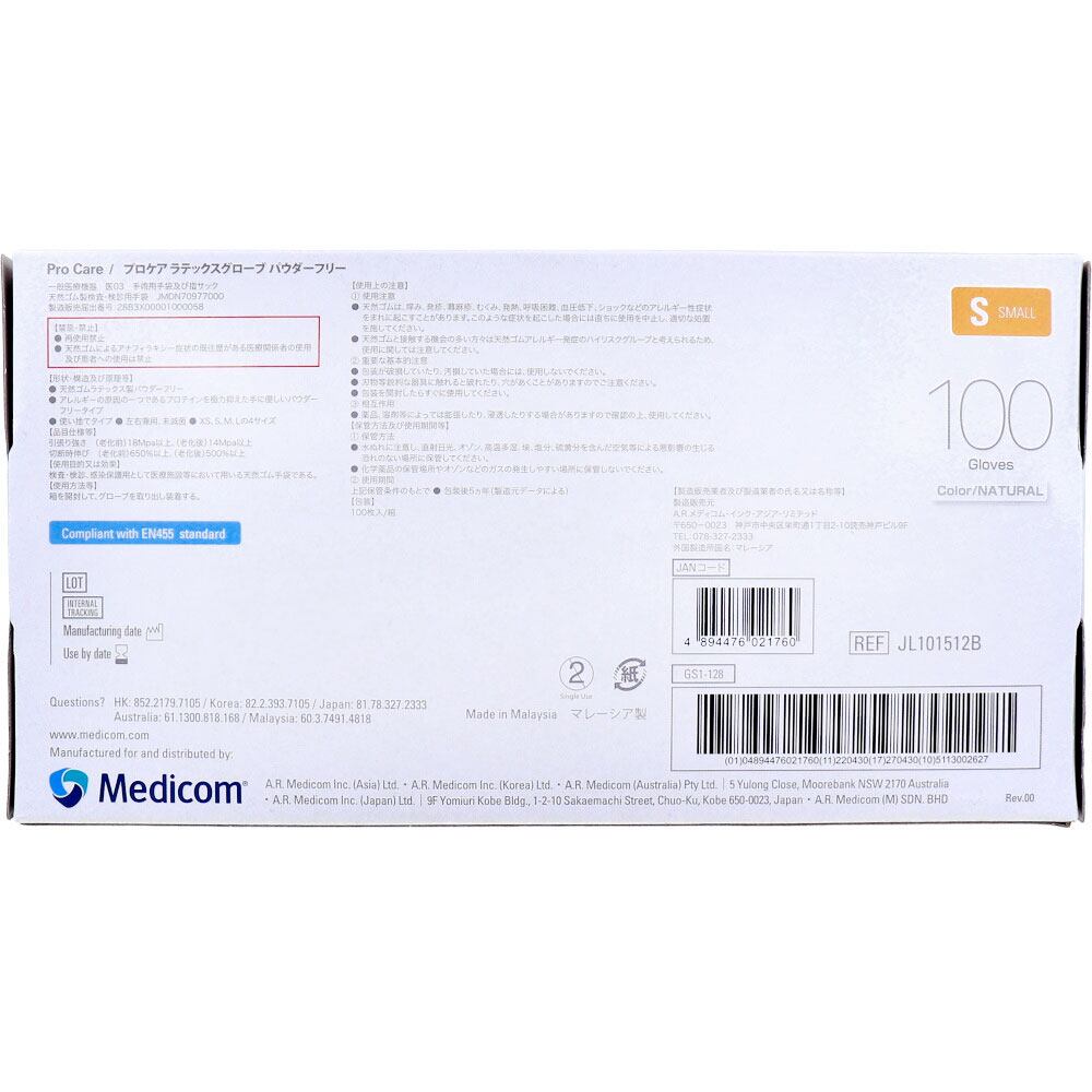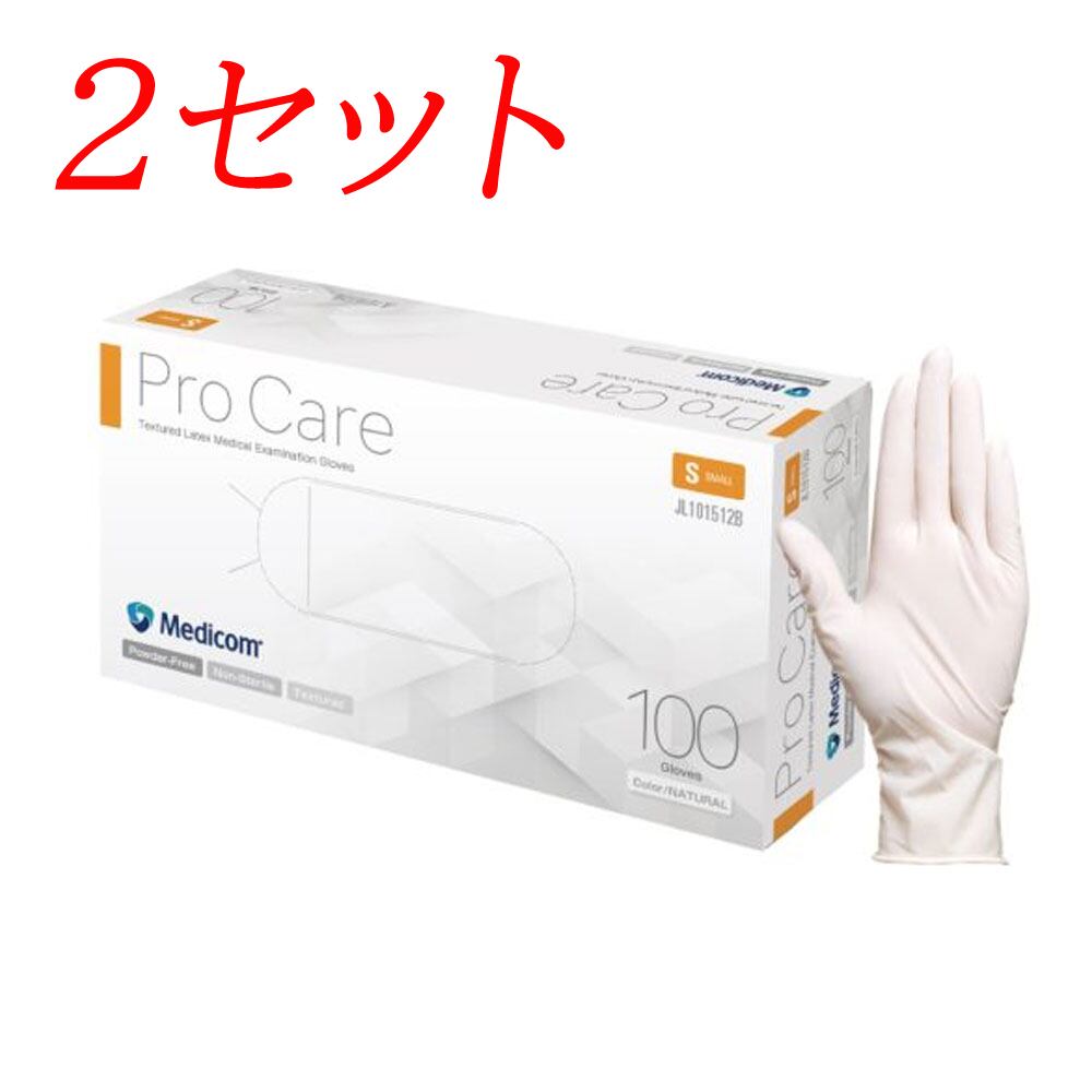 【2セット】 【業務用】プロケア ラテックスグローブ パウダーフリー Sサイズ 100枚入 【pto】
