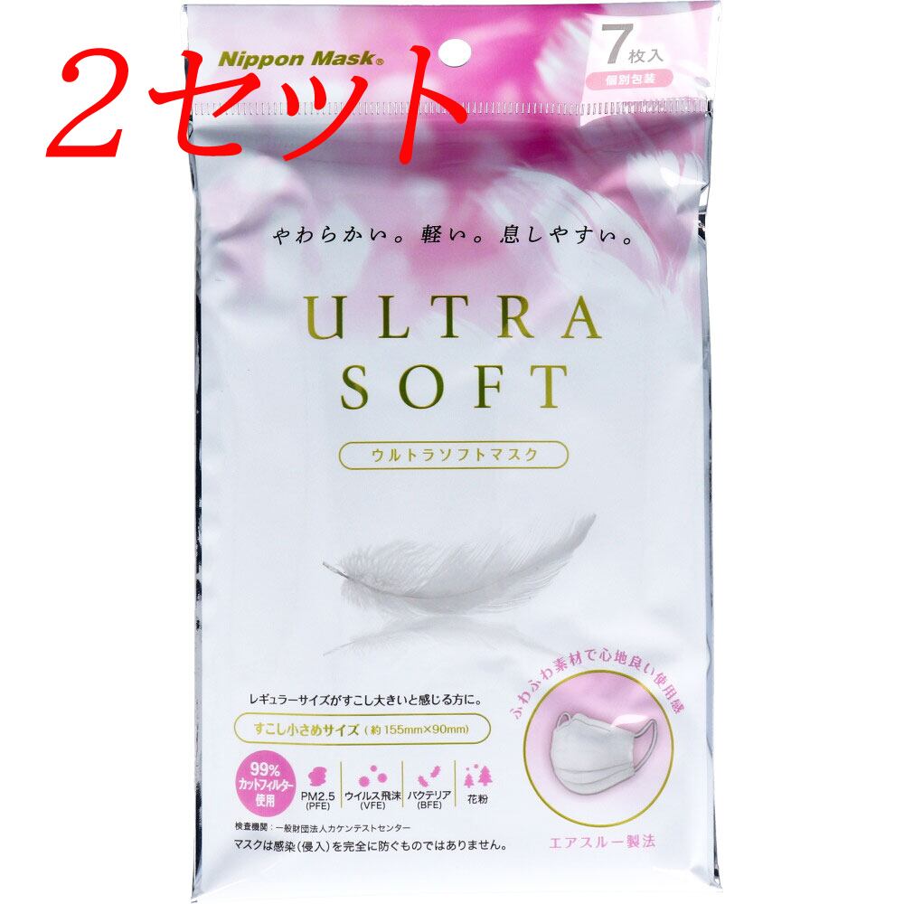 【2セット】 ウルトラソフトマスク すこし小さめサイズ 個別包装 7枚入 【pto】