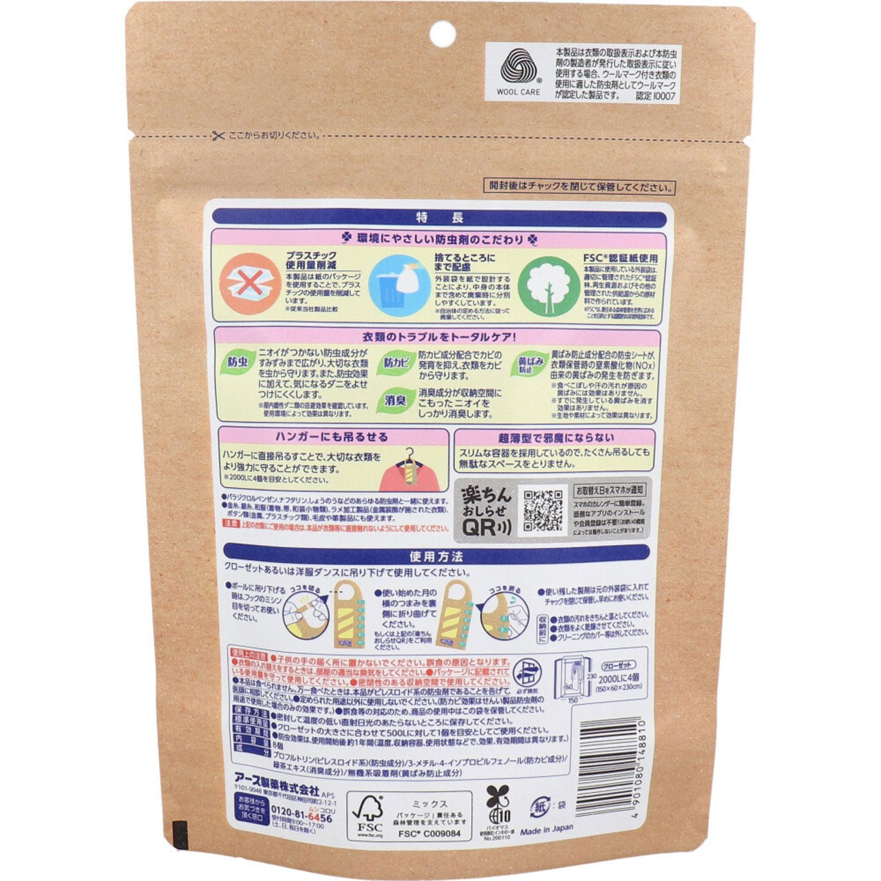 ・防カビ:防カビ成分配合でカビの発育を抑え、衣類をカビから守ります。