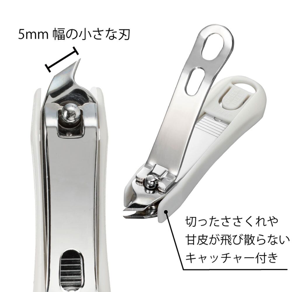 5ミリ幅で小さくて斜めの刃先がさかむけや甘皮をとらえやすくスムーズにカットできます。
