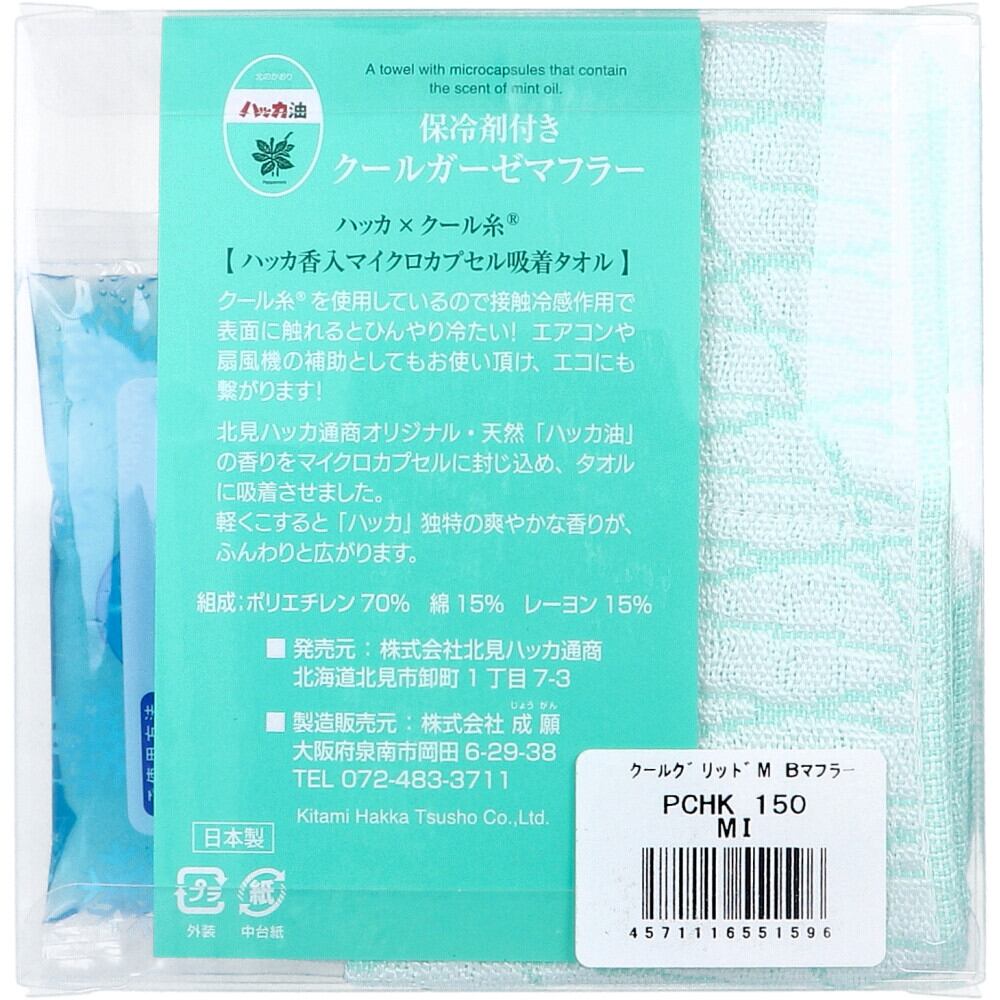 ハッカ香入マイクロカプセル吸着タオル。