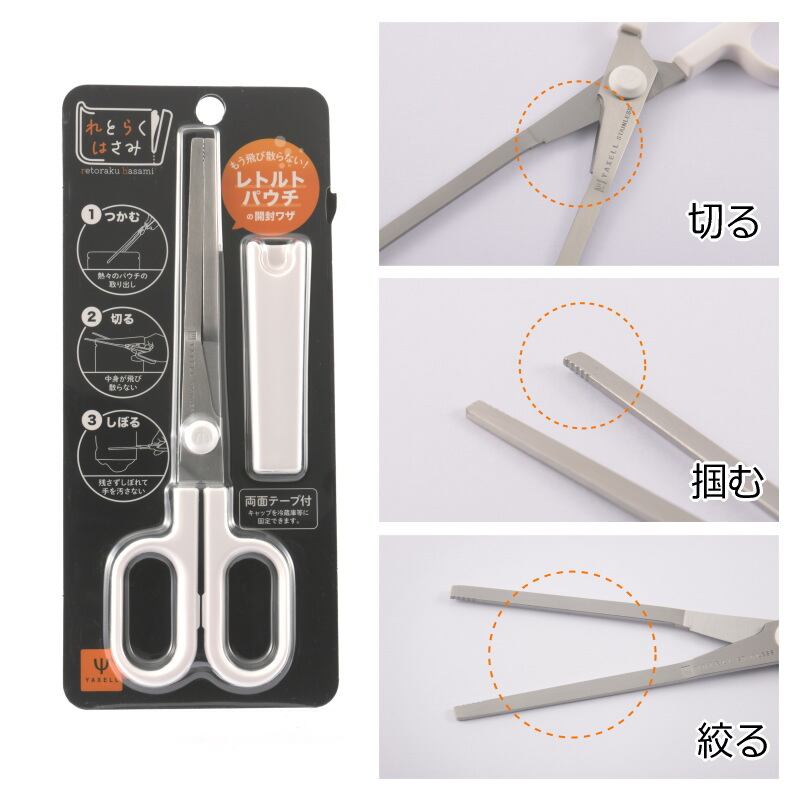 レトルト食品用に特化した多機能はさみです。