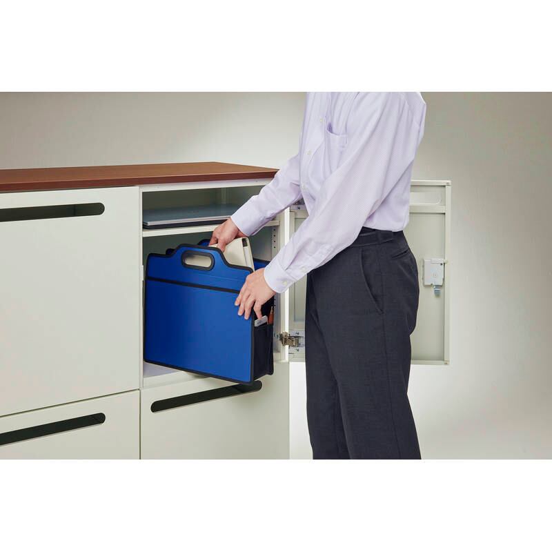 フリーアドレスオフィスにぴったりな社内移動用バッグ PPシート製で耐久性があり、マチ部分は布製なので使わない時はコンパクトに折りたたみ収納できます。