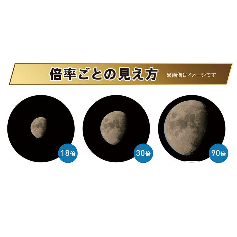 本体:φ80×340mm、アルミ三脚、アイピース(4mm・12.5mm・20mm)、5×24ファインダー、天体観測用天頂ミラー、地上観察用正立プリズム、スマートフォンアダプター、天体ガイドブック、星座早見盤