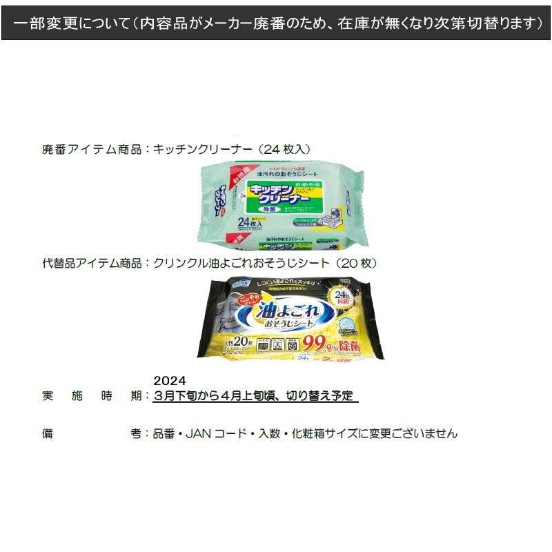 ライオンNANOX one:380g×1、つめかえ用:280g×2、キッチンリフレッシュコンパクト:270mL×1、洗濯槽クリーナー:(50g×2包入)×2、キッチンクリーナー:24枚入(なくなり次第クインクルおそうじシートへ変更)・抗菌ナイロンクリーナー×各1