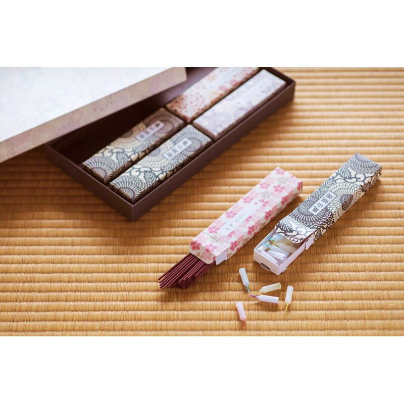 線香:30g×3(ラベンダー・白梅・桜×各1)、五色蝋燭:30g×3
