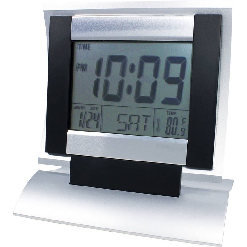 大きな液晶ディスプレイの折りたたみタイプで、角度調整ができるデジタルクロックです。