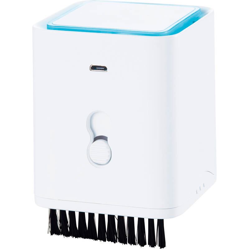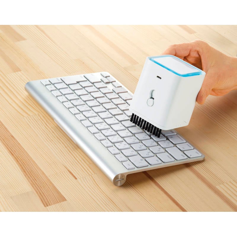 伸びるブラシでパソコンやコーナーを掃きながらお掃除。