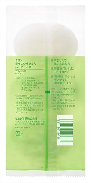 暮らしのせっけんバスソープ ホワイト135G×3個パック [ ミヨシ石鹸 ] [ 石鹸 ]