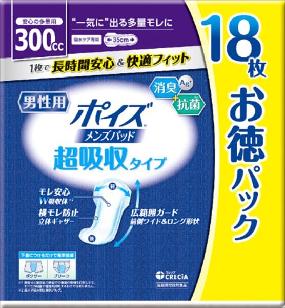 ポイズ メンズパッド 超吸収タイプ 18枚 お徳パック [ 日本製紙クレシア ] [ 介護用品 ]