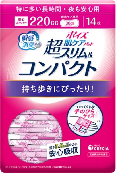 ポイズ 肌ケアパッド 超スリム&コンパクト 特に多い長時間・夜も安心用 14枚[生理用品]