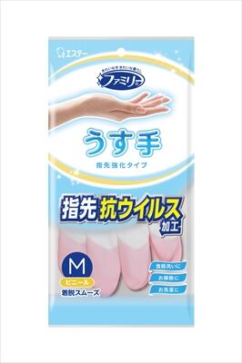 ファミリー ビニールうす手 指先抗ウイルス加工 M ピンク [ エステー ] [ 炊事手袋 ]