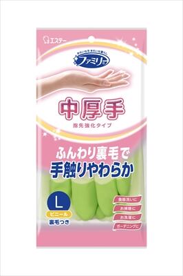 ファミリー ビニール中厚手 指先強化 L グリーン [ エステー ] [ 炊事手袋 ]