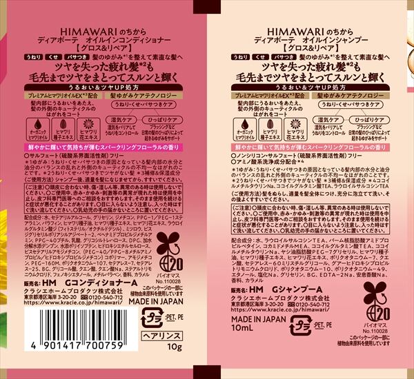 ●プレミアムヒマワリオイルEX配合(脂質&水分キープ+うるおい保持&ツヤUP成分) ●髪のゆがみ(うねり・くせ・パサつき)を整え、毛先までツヤツヤ、サラサラな髪へ ●「ゆがみケアシステム」採用 ●うねりを目立たなくする「うねりコントロール処方」 ●傷んだ部分をねらって補修する「ダメージセンサー機能」 ●明るく気持ち弾む華やかで透明感のあるスパークリングフローラルの香り