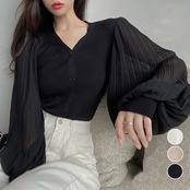 ニットカーディガンボリューム袖Vネック