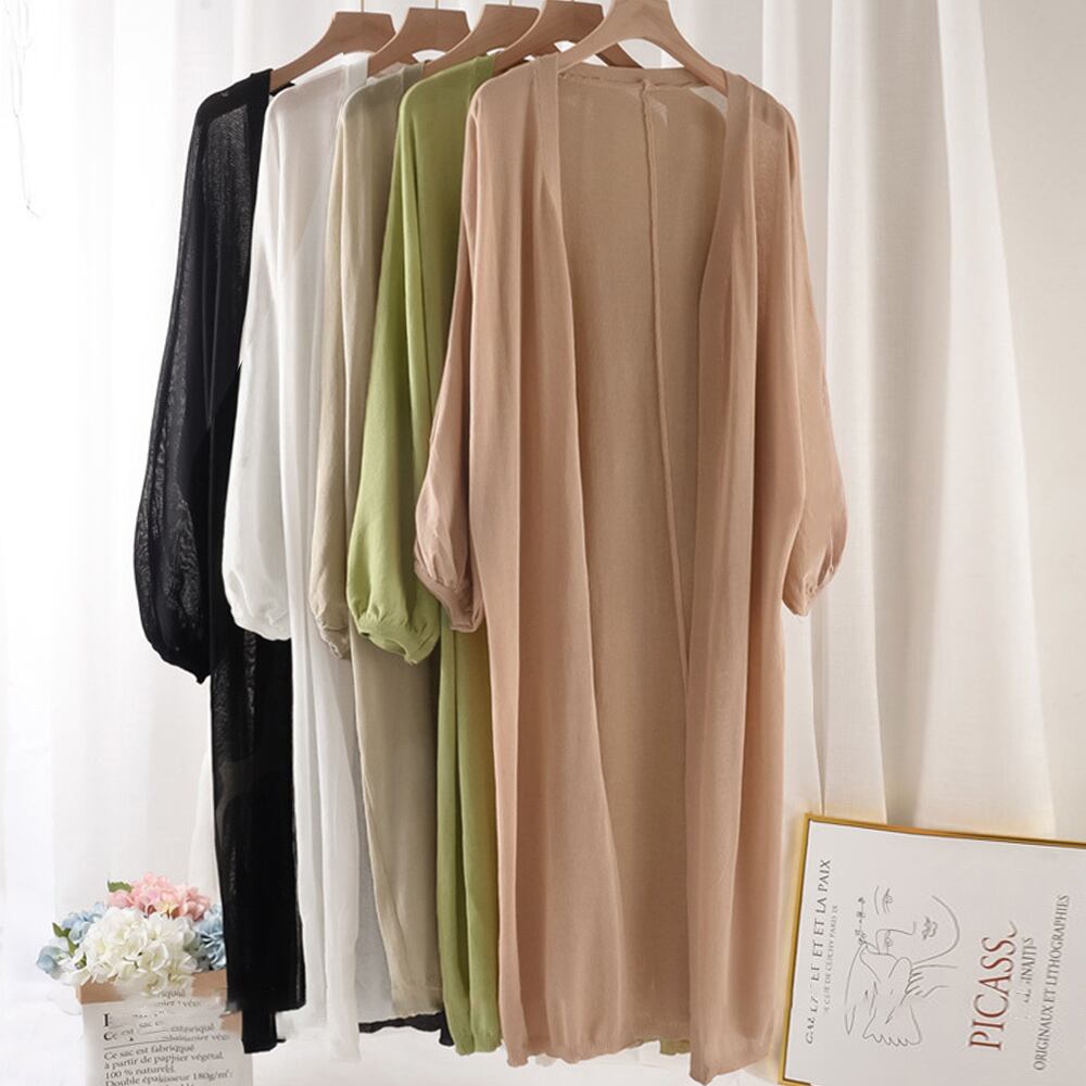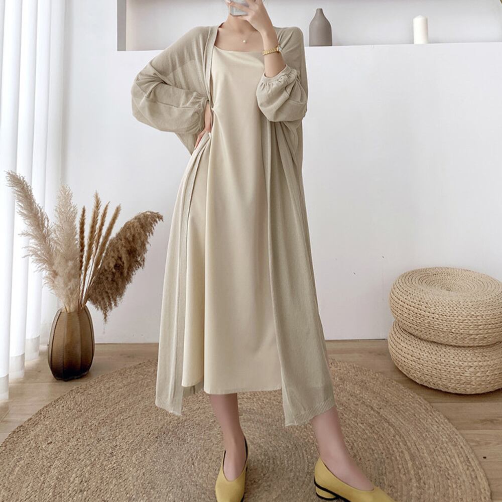 レディース オープンロングシアーカーディガン 長袖 ライトアウター 軽いサマーニット 羽織り 体型カバー トッパーカーデサマーカーデ韓国風 紫外線防止UV対策 ゆったり 冷房対策この季節に大活躍、日焼け防止やクーラー対策にも使える万能のサマーニットカーディガン長めの丈で気になるウエスト部分から太もも周りまでしっかりとカバーシンプルなコーデにサラッと羽織れば、こなれ感を演出してくれるデイリー使いはもちろん、UV対策や、気温調整用にも使える優秀アイテム素材:ポリエステル100%カラー:ブラック/ホワイト/グレージュ/アイボリー/サーモンピンク/グリーンサイズ:ワンサイズ着丈:約110cm ゆき:約75cm 身幅:約84cm 胸囲:フリー裏地:なし伸縮性:あり透け感:あり生産国:中国※すべて平置きサイズです(採寸方法違いより、多少の誤差がございますので、ご了承ください)。
