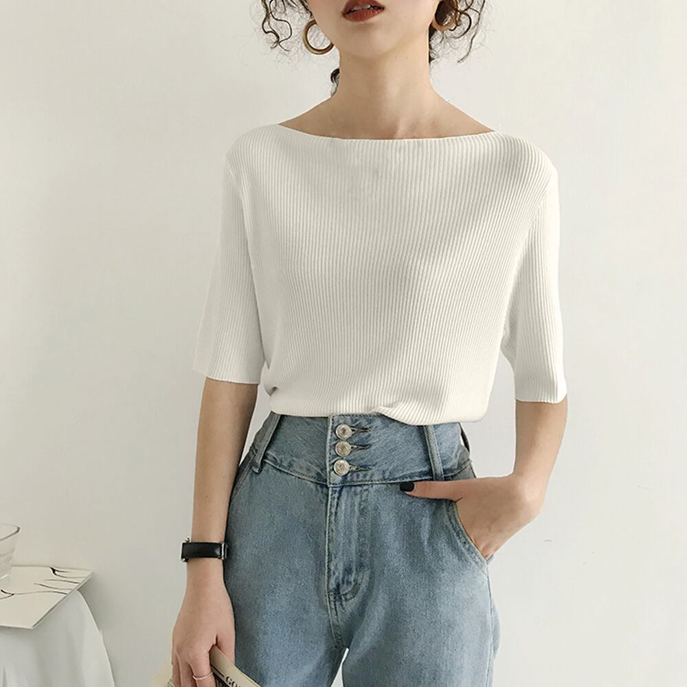 ニットトップス ボートネック ニットソー 無地 プルオーバー シンプル 韓国ファッション薄手 リブニット 無地 ニットソー 着やせ トップスボディラインを美しく見せる伸縮性抜群のニットトップスボートネックデザインがデコルテを綺麗に見せてくれる無地のためスカートやパンツもどのようなものでも合わせやすい一着です素材:レーヨン90%+ナイロン10%カラー:ブラック/ホワイト/イエロー/ピンク/グリーン/ブルーサイズ:ワンサイズ着丈:約52cm 肩幅:約34cm 袖丈:約24cm ゆき:約41cm 身幅:約45cm 胸囲:約90-130cm裏地:なし伸縮性:あり透け感:ホワイトのみややあり生産国:中国※すべて平置きサイズです(採寸方法違いより、多少の誤差がございますので、ご了承ください)。