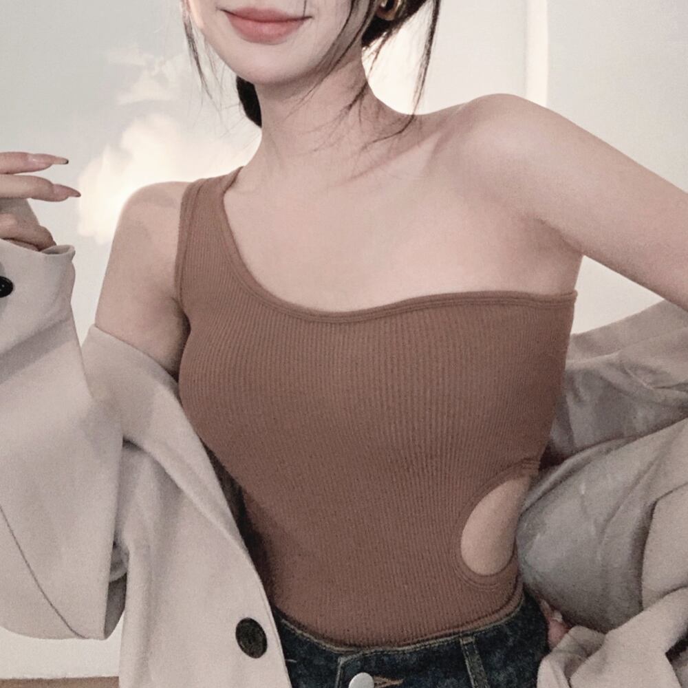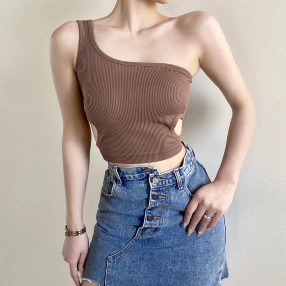 タンクトップ へそ出し ワンショルダー