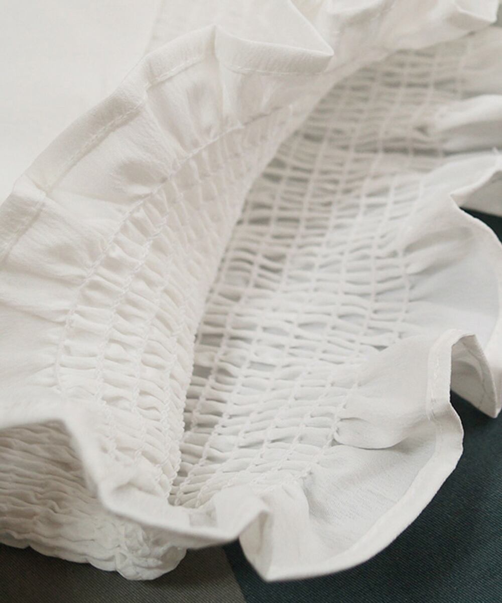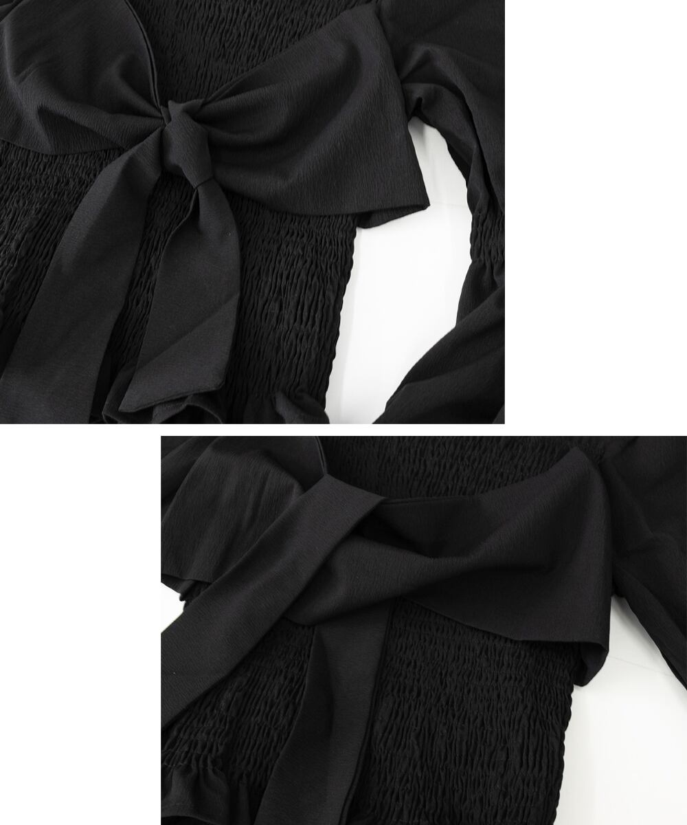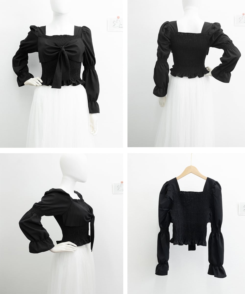 ブラウス 白黒 シャーリング ショート丈