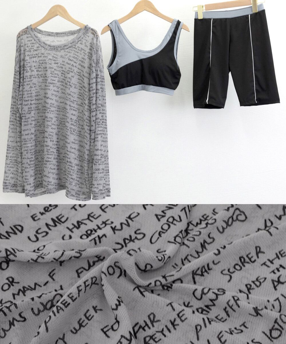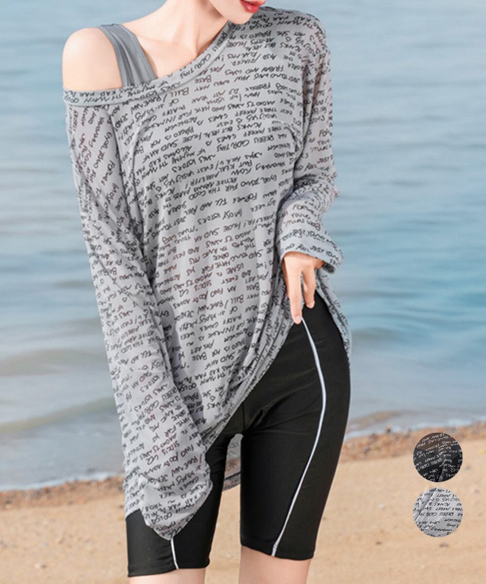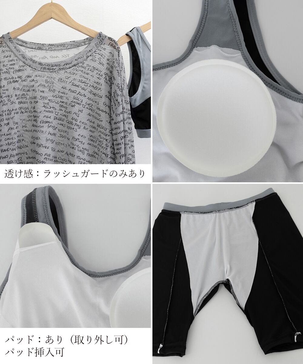水着レディース スイムウェア ショートパンツ スポーツブラ 日焼け対策 ロゴラッシュガード 水着3点セット タンキニ水着露出控え水着 水泳 スイミング みずぎ おしゃれママ水着黒動きやすくて着心地が良いスポブラとショートパンツ、日焼け対策ワイドTシャツの3点水着セットワイドラッシュガードは、お腹周りや二の腕、太ももなどをすべて包み込んでカバーしてくれるので、全身気になる方に最適水着としてはもちろん、フィットネスや普段のスポーツウェアとしても◎スポーティーなデザインで、夏場のウォータースポーツも楽しめるラッシュガード素材:ポリエステル100%水着素材:ポリエステル85%+ポリウレタン15%カラー:ブラック/グレーサイズ:ワンサイズラッシュガード:着丈:約70cm 肩幅:約50cm 袖丈:約53cm ゆき:約78cm 身幅:約54cm 胸囲:約108-160cm水着トップ:着丈:約32cm トップバスト:約70-100cm アンダーバスト(ゴム仕様):約58-100cm水着パンツ:着丈:約42cm 股下:約20cm ウエスト(ゴム仕様):約58-100cm ヒップ:約86-120cm もも周り:約36-54cm商品詳細:・パッド:あり(取り外し可)・パッド挿入可・ワイヤー:なし裏地:なし伸縮性:あり透け感:ラッシュガードのみあり生産国:中国※すべて平置きサイズです(採寸方法違いより、多少の誤差がございますので、ご了承ください)。
