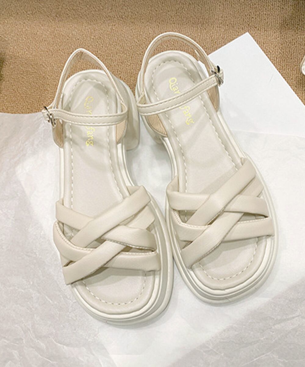 厚底サンダル ボリュームソール 編みベルト オルチャン 美脚 カジュアル お洒落 可愛い 痛くない 履きやすい夏サンダル コンフォート靴 韓国ファッションシンプルなデザインで幅広いスタイリングに使えるストラップサンダル!