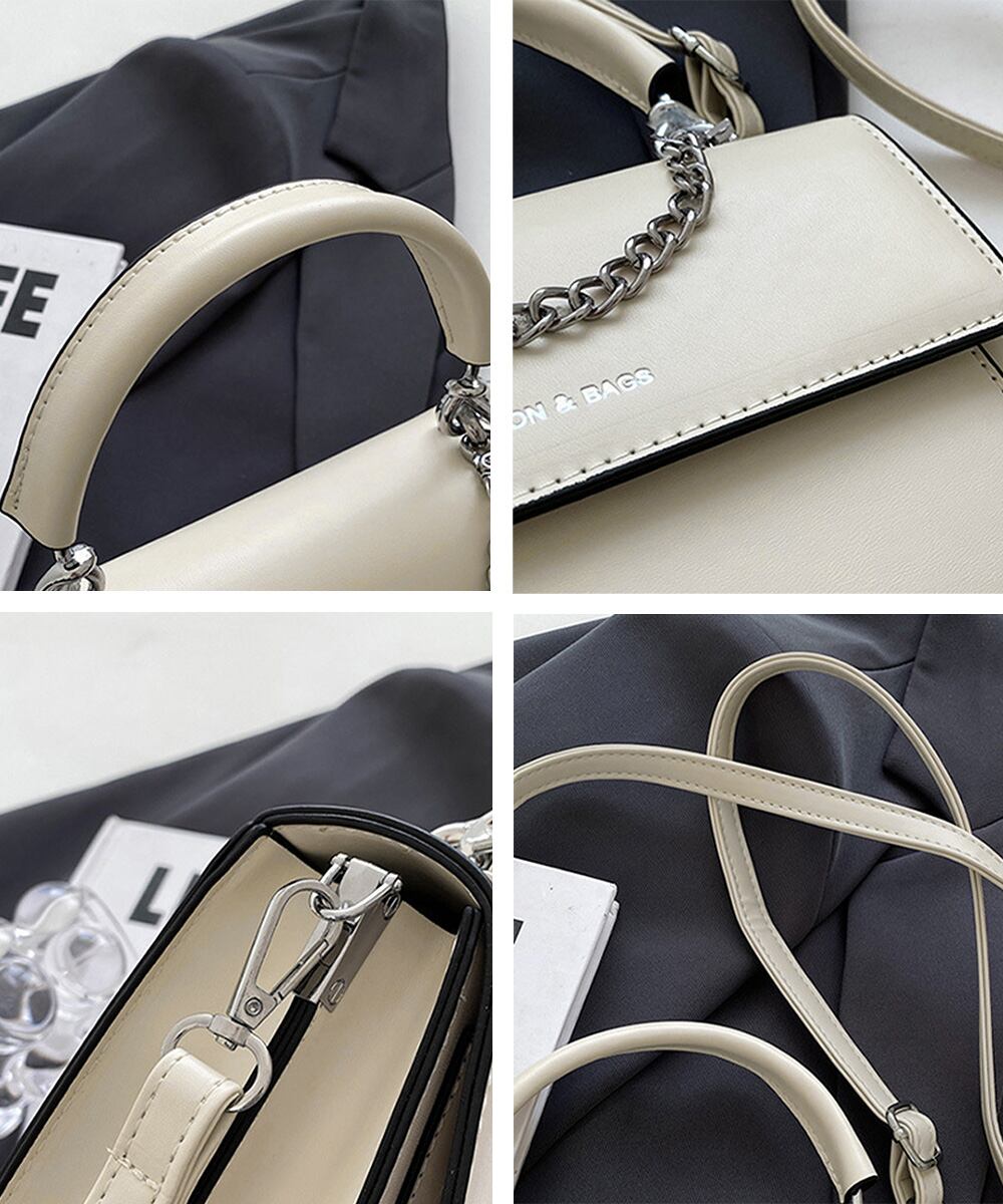 ミニショルダー 大人可愛い ハンドバッグ 小さめ手提げバッグ 2WAY おしゃれ PUレザーかばん チェーンチャーム付きスクエアバッグミニ スマホポシェット黒 カジュアルきれいめ小ぶりで使いやすいショルダーバッグチェーンストラップ付きでアクセサリー感覚で持てる中はポケットで仕切られ、らくらく整理整頓スマホやミニ財布、お出かけに必要なミニマムなアイテムが収納でき、軽やかにお出かけできるサイズ感ちょっとしたお出かけやお散歩、デートなどにぴったり素材:合成皮革カラー:ブラック/アイボリー/ブラウンサイズ:高さ:約16cm 底横幅:約21cm マチ:約7cm 持ち手高さ:約8cm(調節不可、取り外し不可) ショルダー:約72-136cm(調節可能、取り外し可能)チェーン長さ:約20cm(調節不可、取り外し可能)重さ:約554g裏地:なし内ポケット:あり生産国:中国※すべて平置きサイズです(採寸方法違いより、多少の誤差がございますので、ご了承ください)。