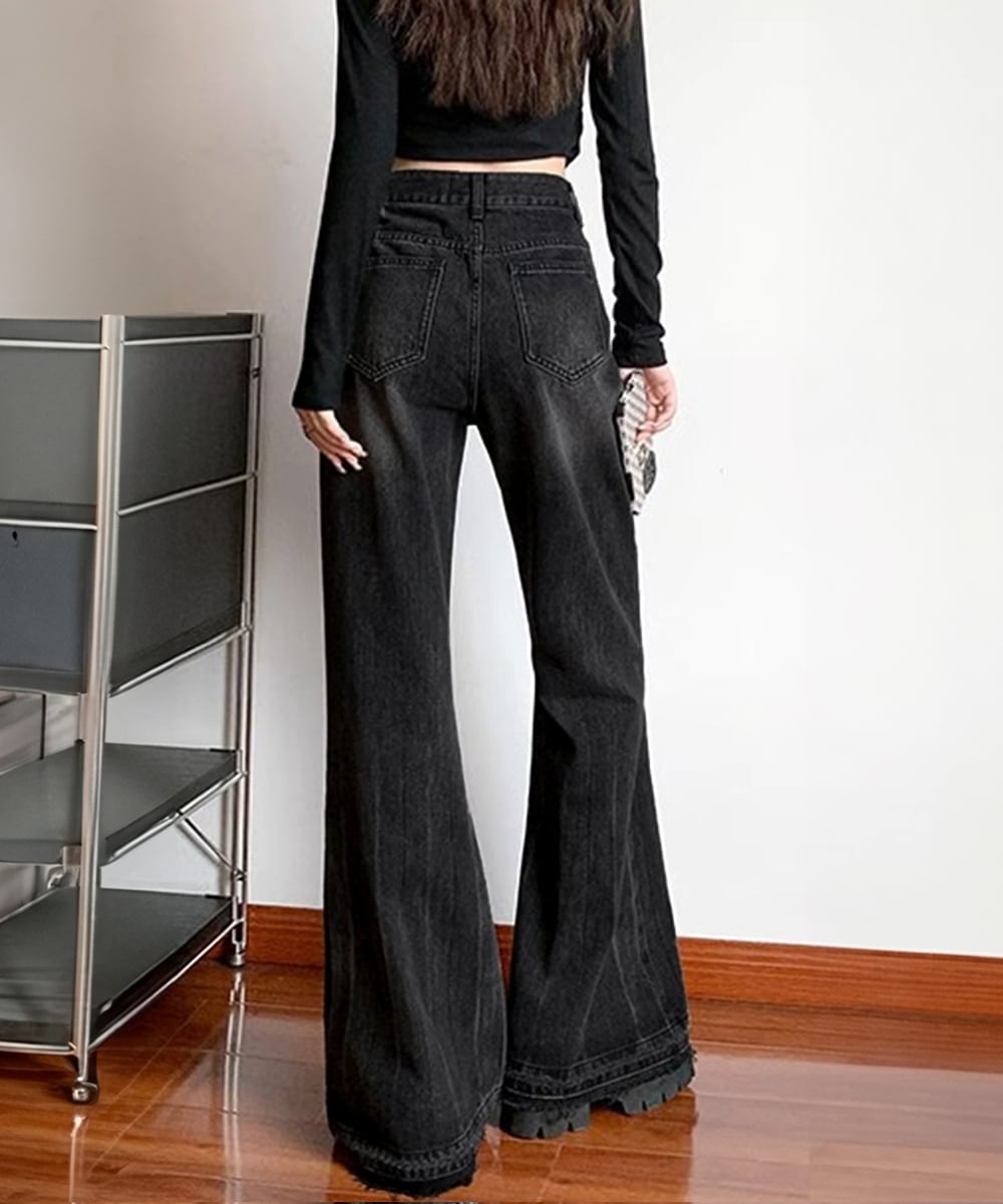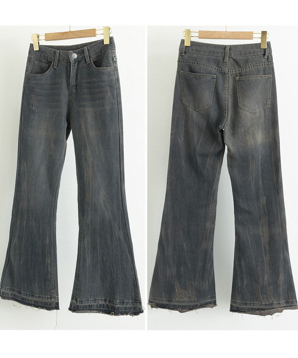 【日本倉庫即納】 レトロ フレアデニムパンツ ローエッジ