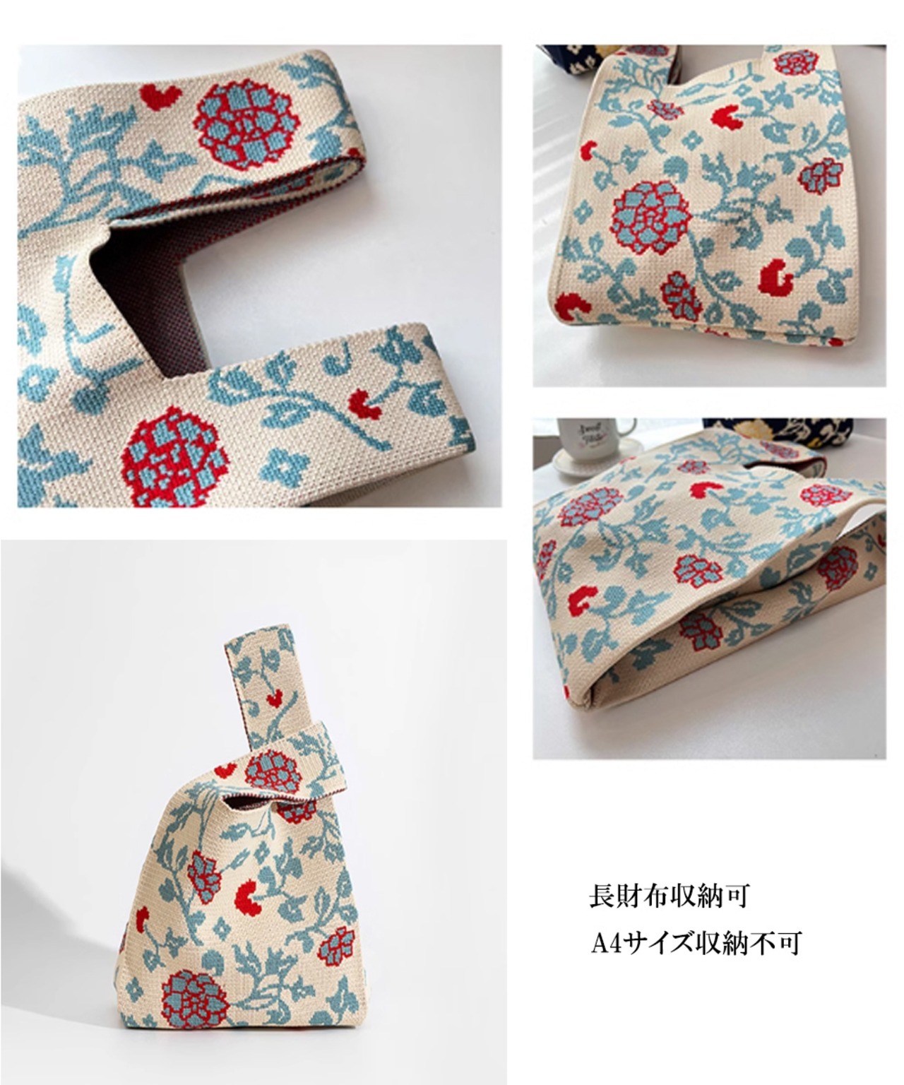 可愛い ニット編み ミニバッグ 小さめ トートバッグ レディース ハンドバッグ おしゃれ サブバッグ軽量 折り畳める鞄カジュアルバッグ春 韓国 手提げかばん お散歩バッグゼブラトレンド感漂う、可愛らしいマルシェバッグミニサイズながら、しっかりとした収納力カラーバリエーション豊富で、気分にあったカラーをお選びいただける素材:ポリエステル75%+アクリル25%カラー:ブラック*ボーダー/ブラック×ホワイト/ブラック*ハート/ブラック*ノルディック/ブラック系1/アイボリー*フラワー/ホワイト系1/ホワイト系2/ホワイト系3/ホワイト系4/ホワイト系5/イエロー/ベージュ系1/ベージュ系2/パープル*ゼブラ/パープル系1/グリーン*レオパード/グリーン*ハート/グリーン系2/ネイビー*フラワー/ネイビー系1/ブラウン*ボーダー/ブラウン系1/ピンク英字/ピンク*ハート/ピンク系3/ブルー英字/ライトブルーサイズ:高さ:約22.5cm 底横幅:約20cm マチ:約8cm 持ち手高さ:約13cm(調節不可、取り外し不可)重さ:約125g裏地:なし内ポケット:なし生産国:中国※すべて平置きサイズです(採寸方法違いより、多少の誤差がございますので、ご了承ください)。