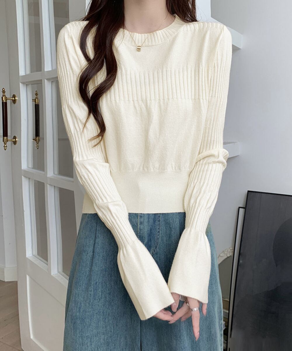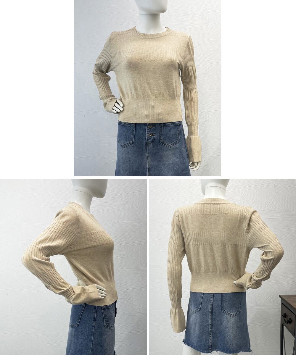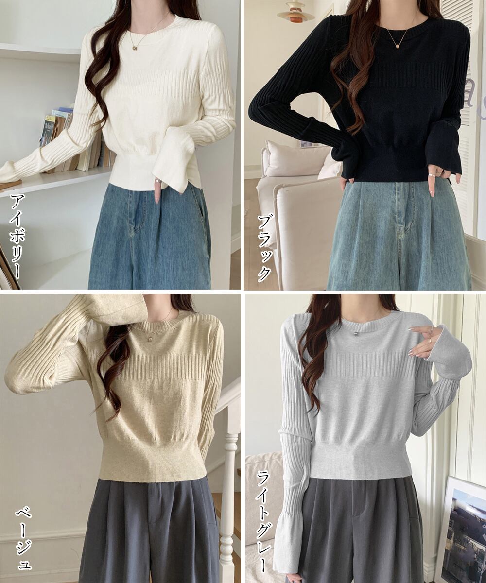 大人秋服 ニットセーター ストレッチ 普段着 ニットウェア クルーネック ニットプルオーバー ニットインナー 韓国風カジュアル ニット 長袖 無地トップス 着やせ リブニットベーシックなシルエットに今年らしさをプラスしたベルスリーブニットリブ編みのニット生地で伸びが良く着心地も抜群一枚着はもちろん、トレンドのジャケットやジレのインナーとしてもおすすめ素材:ポリエステル65%+アクリル35%カラー:ブラック/アイボリー/ベージュ/ライトグレーサイズ:ワンサイズ着丈:約45cm 肩幅:約34cm 袖丈:約60cm ゆき:約77cm 身幅:約43cm 胸囲:約86-140cm裏地:なし伸縮性:あり透け感:アイボリーのみややあり※ニット素材の為、伸縮具合によっては編みに隙間を感じる場合があります生産国:中国※すべて平置きサイズです(採寸方法違いより、多少の誤差がございますので、ご了承ください)。
