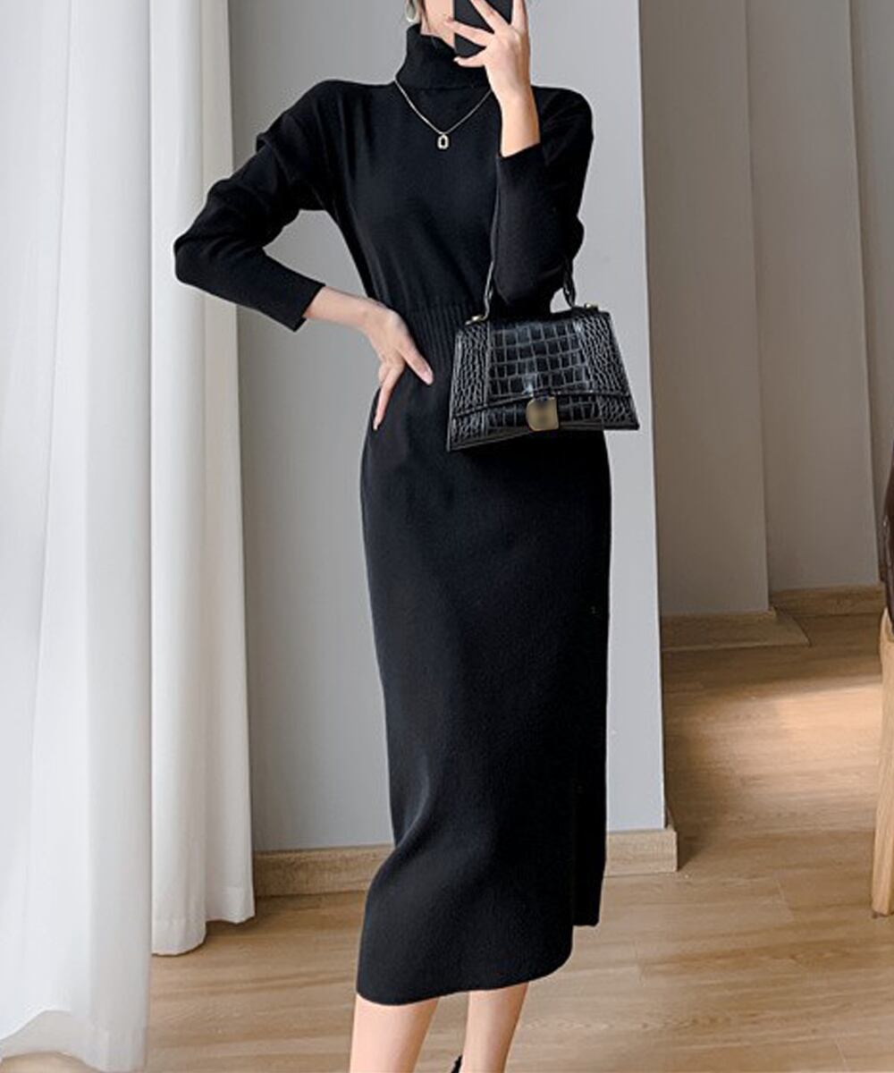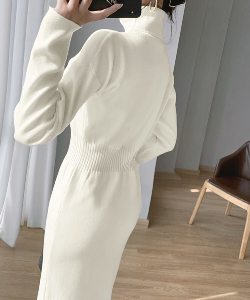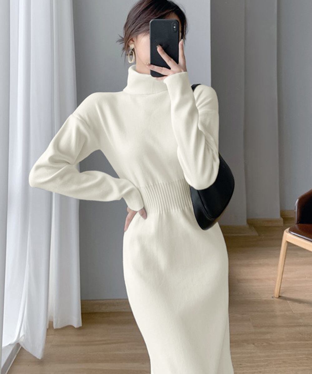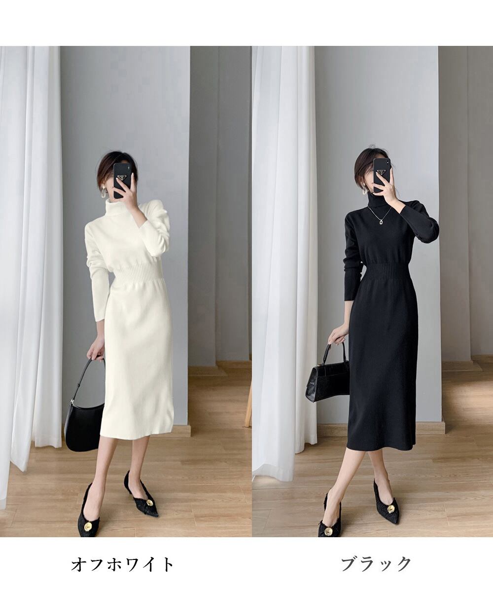 オフィスカジュアル ロングワンピース きれいめ ウエストマーク レディース 秋冬 タイトワンピ 無地 ハイウエスト着やせワンピ ハイネック 大人ワンピ長袖通勤 パーティー 着回しウエストラインを美しく際立たせるニットロングワンピース首周りを暖かく包み込む、上品な雰囲気を漂わせるタートルネック体型カバーしつつ華奢感を強調して細見えするシンプルで飽きのこない無地デザインは、様々なアクセサリーやアウターとの相性が抜群素材:ポリエステル70%+アクリル30%カラー:ブラック/オフホワイトサイズ:ワンサイズ総丈:約105cm 肩幅:約46cm 袖丈:約48cm ゆき:約71cm 身幅:約40cm 胸囲:約80-124cm ウエスト:約50-94cm ヒップ:約76-120cm裏地:なし伸縮性:あり透け感:オフホワイトのみ若干あり※ニット素材の為、伸縮具合によっては編みに隙間を感じる場合があります。