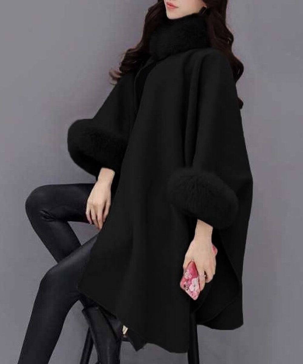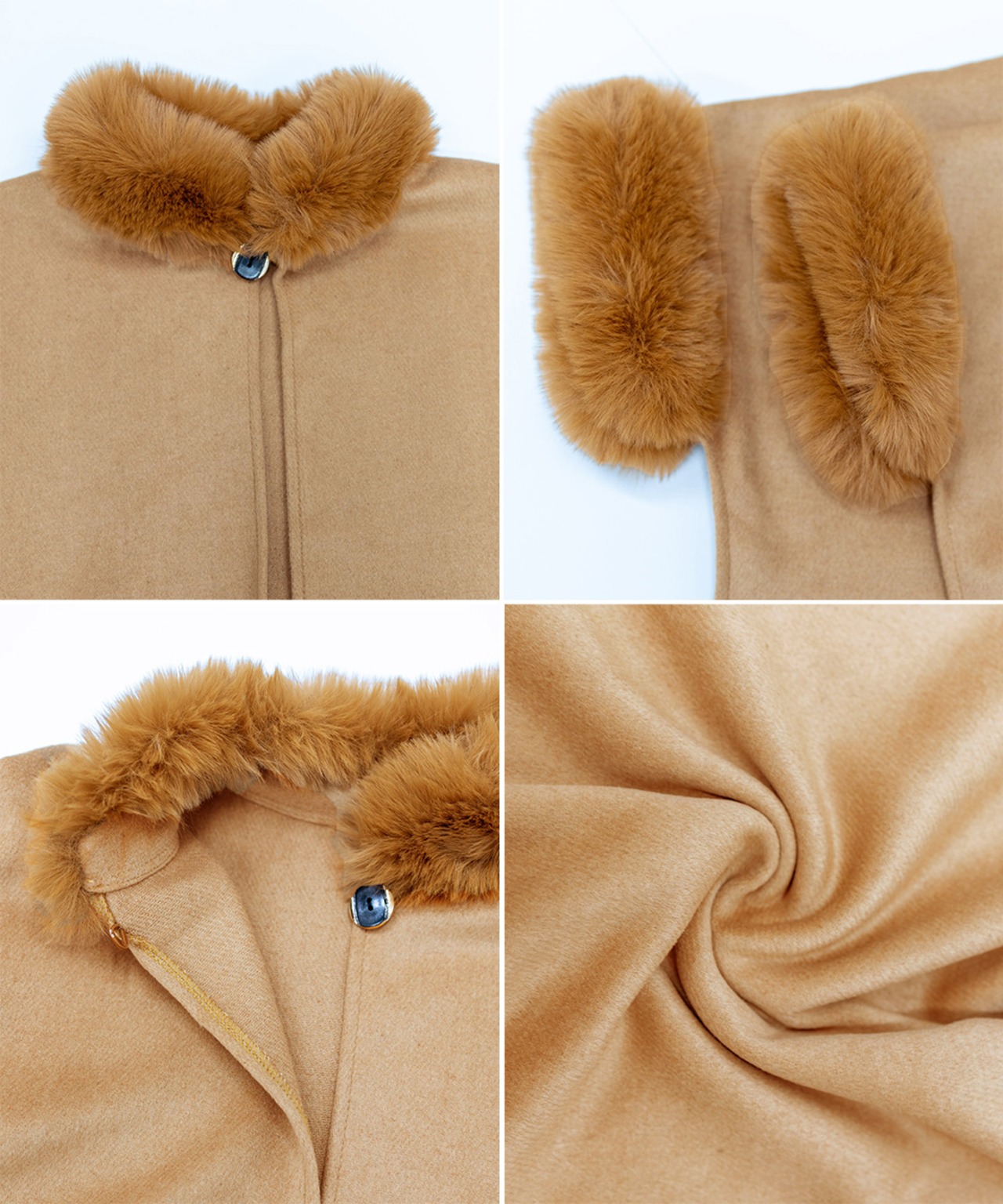 ポンチョコート カシミヤウールタッチ マントコート 女優コート きれいめ お嬢様アウター暖かい 高見え 羽織りもの 秋冬体型カバーアウター 演奏会コート同窓会 パーティー服装女性滑らかなウール風生地を使用、サッと羽織ってサマになるケープコートが新作登場ふわふわボリューミーなファー付き仕様、シンプルさにエレガンスをPLUS個性的なデザインでありながら落ち着きのあるカラー展開、暖かくて大人っぽい高見えポンチョコート素材:ポリエステル70%+ウール30%カラー:ブラック/グレー/キャメルサイズ:ワンサイズ着丈:約82.5cm ゆき:約69cm 身幅:約105cm 胸囲:フリー裏地:なし伸縮性:なし透け感:なし生産国:中国※すべて平置きサイズです(採寸方法違いより、多少の誤差がございますので、ご了承ください)。
