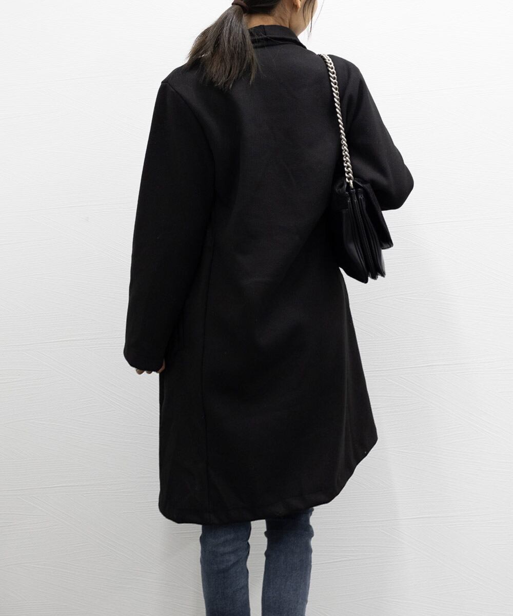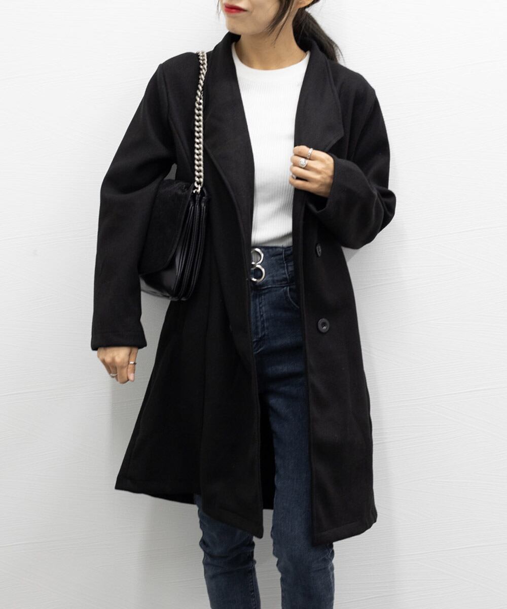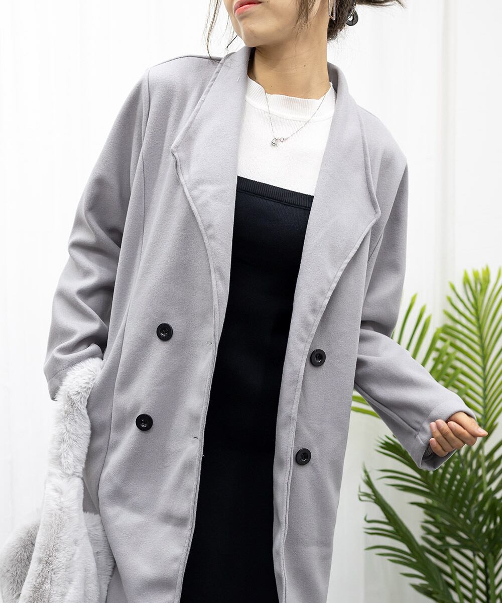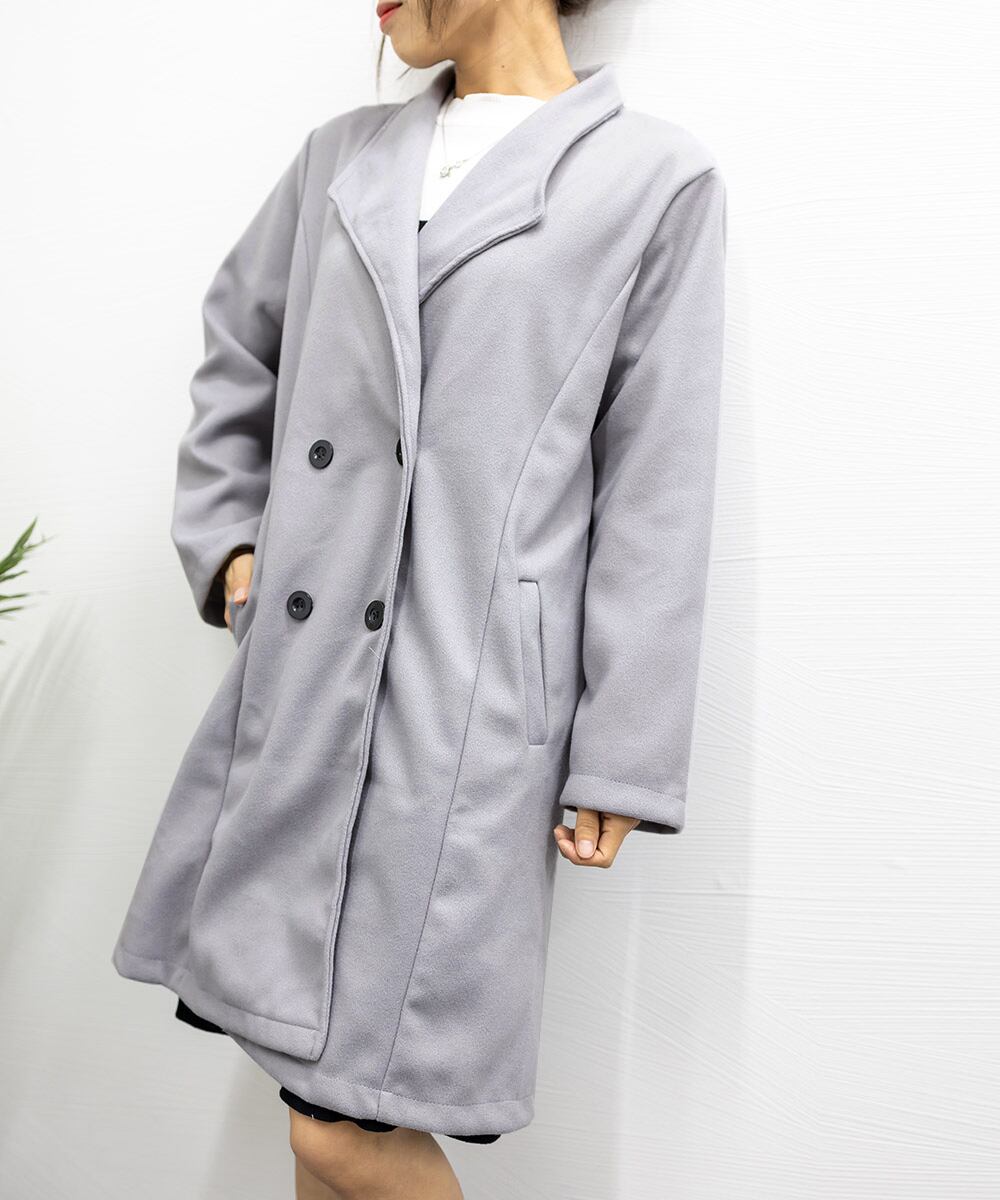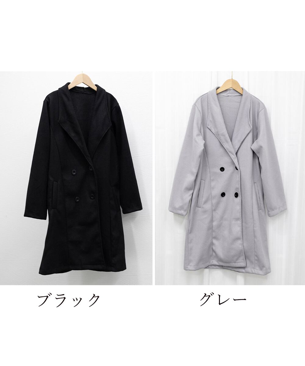 微起毛膝丈コート 春秋冬 ベーシックテーラードコート 体型カバー着やせ ミディアムコート きちんと服 30代40代 ゆる軽いコート無地軽量 きれいめコート大人 通勤通学コート女性テーラード風折り襟がきちんと感抜群、ダブルブレストボタン仕様がクラシカルなレディースコート軽やかな着心地をもたらし、着込みがちな肌寒い季節でも着膨れせず、さっと羽織るだけでお出掛けできちゃう肩こり知らずな1着シーズンライクな定番カラー展開は落ち着きがあって大人っぽさをPLUS、お手持ちのアイテムと気軽に合わせられてロングシーズン着回しOK素材:ポリエステル85%+綿15%カラー:ブラック/グレーサイズ:M/L/XL[M]着丈:約89cm 肩幅:約39cm 袖丈:約56cm ゆき:約75.5cm 身幅:約49cm 胸囲:約98cm[L]着丈:約90cm 肩幅:約40cm 袖丈:約56cm ゆき:約76.0cm 身幅:約50cm 胸囲:約100cm[XL]着丈:約91cm 肩幅:約41cm 袖丈:約56cm ゆき:約76.5cm 身幅:約51cm 胸囲:約102cm裏地:なし伸縮性:なし透け感:なし生産国:中国※すべて平置きサイズです(採寸方法違いより、多少の誤差がございますので、ご了承ください)。